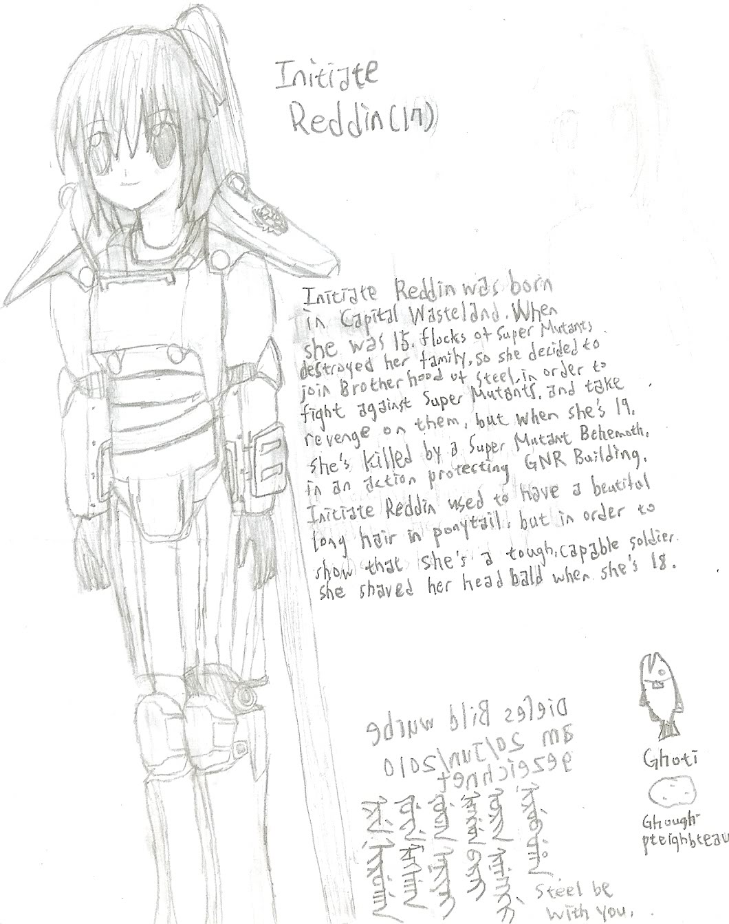 Fallout 3的Initiate Reddin的二设图─妄想她还有头发时的样子。