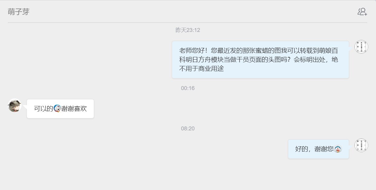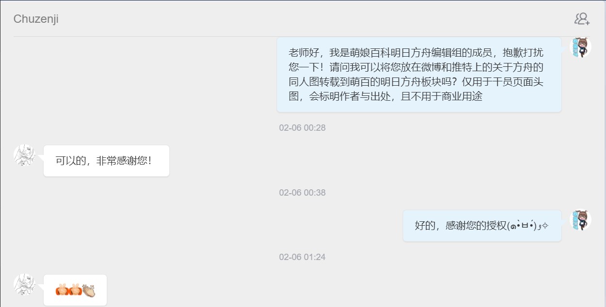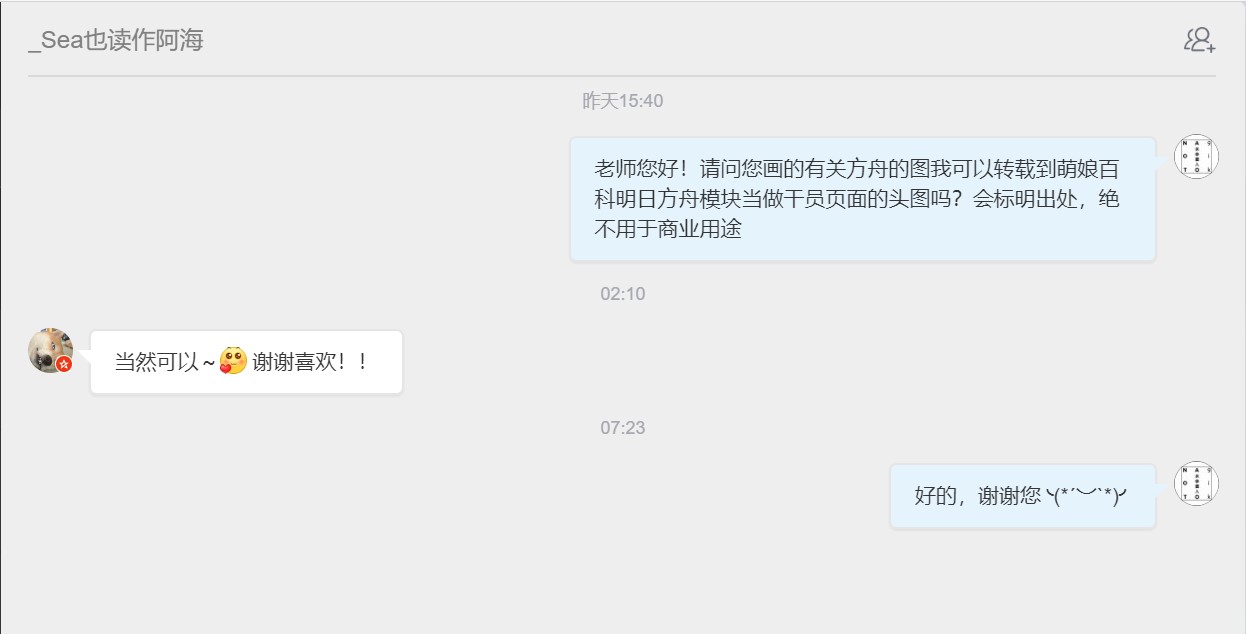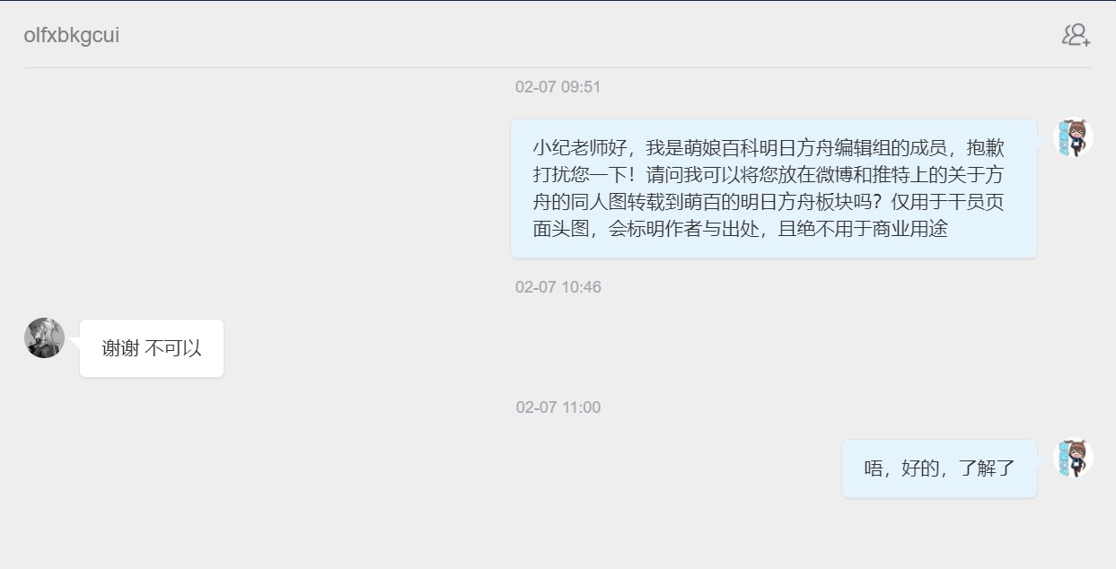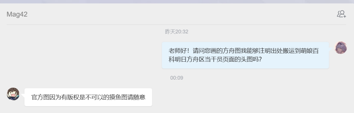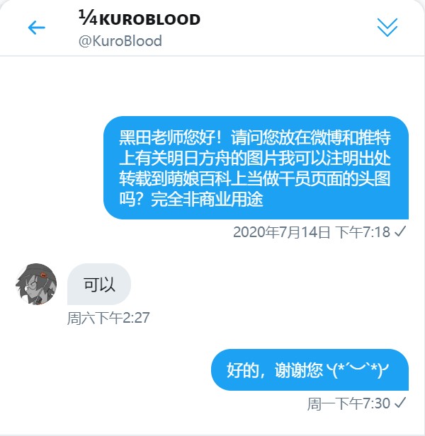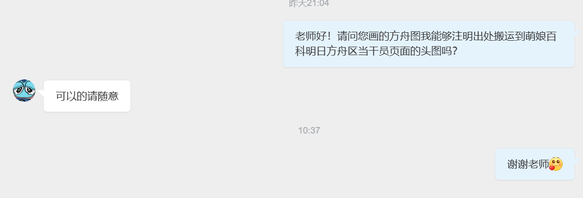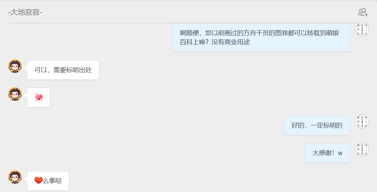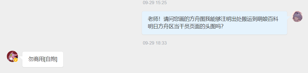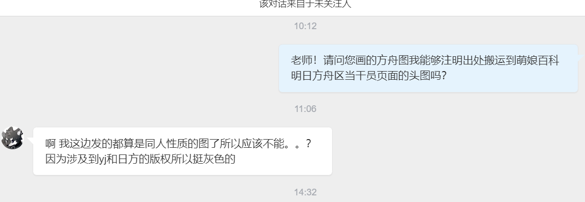 - ④本人拒绝了转载其有关《明日方舟》的同人画作的请求。