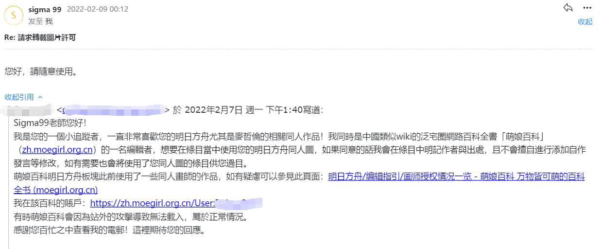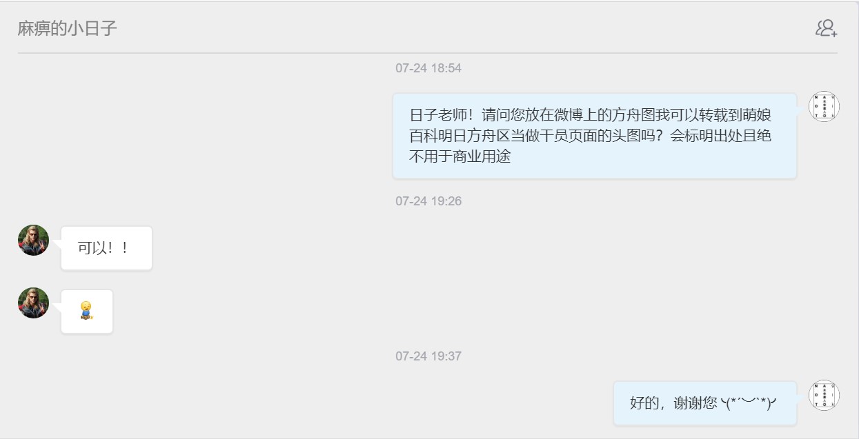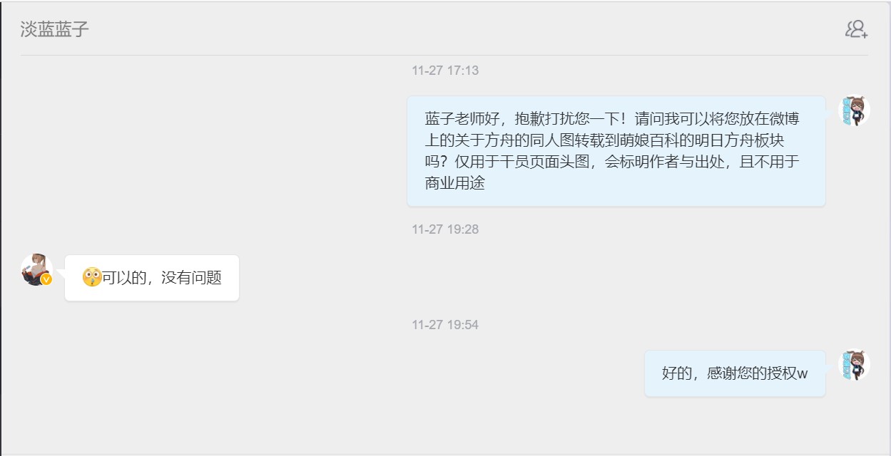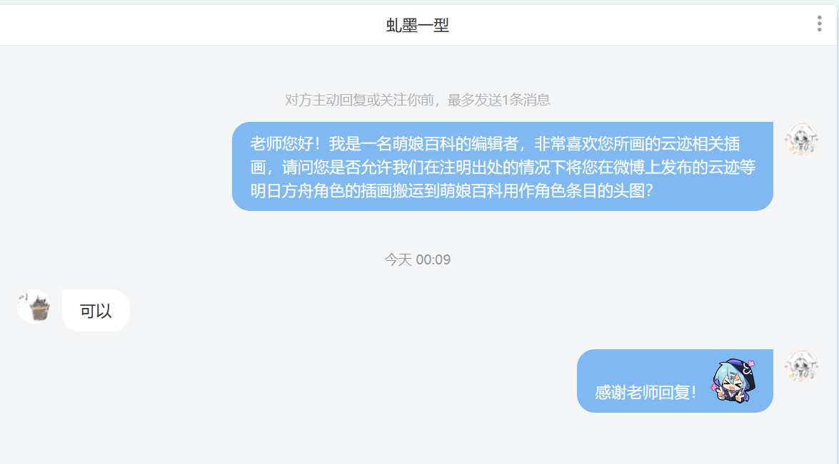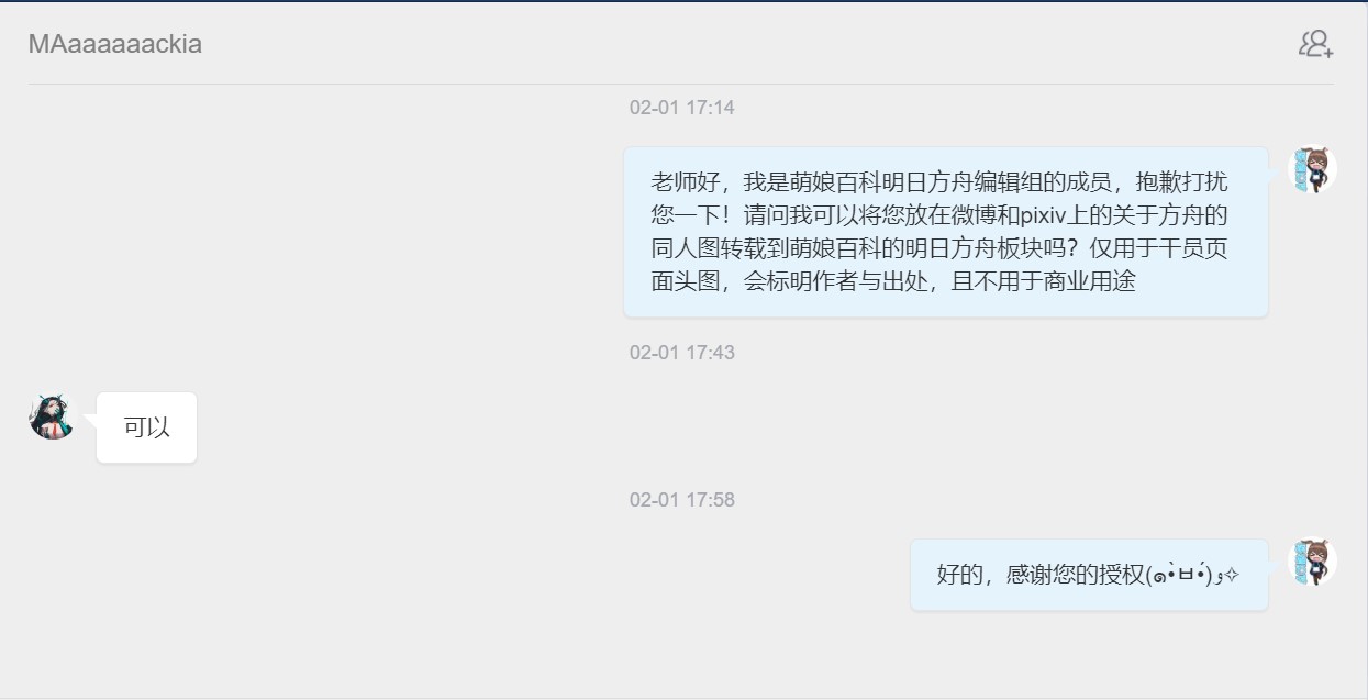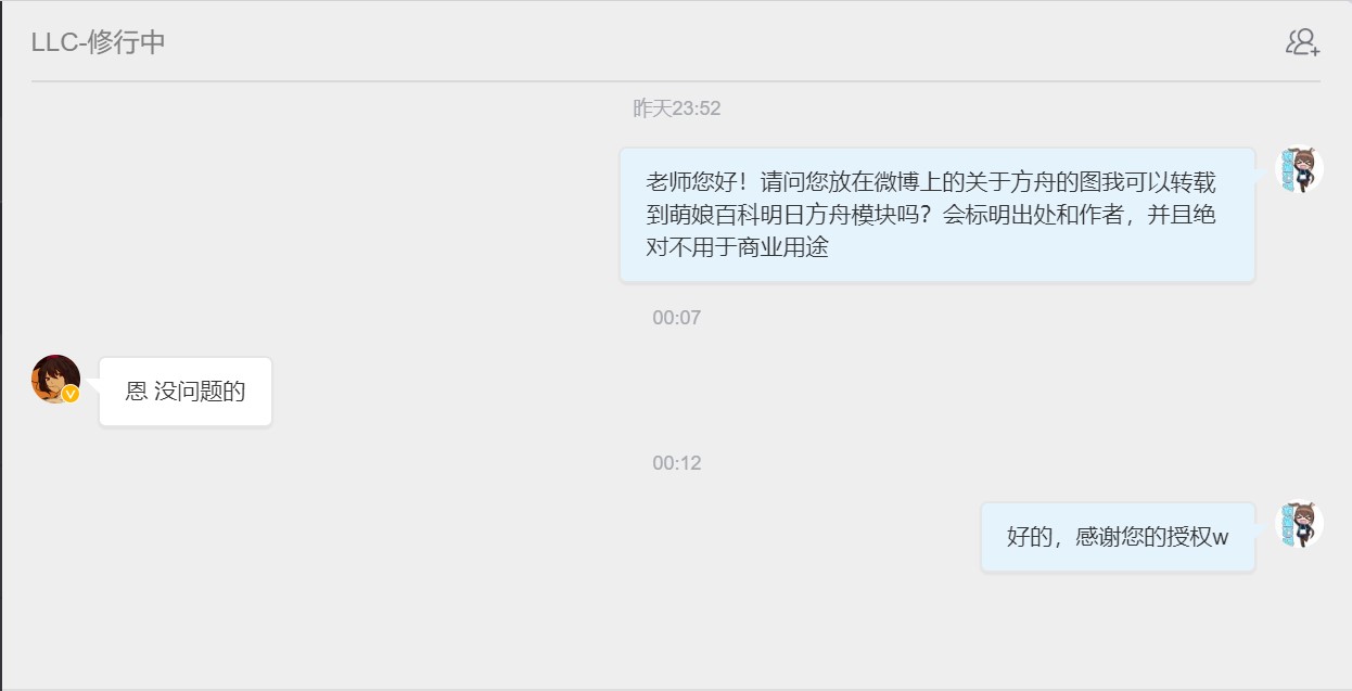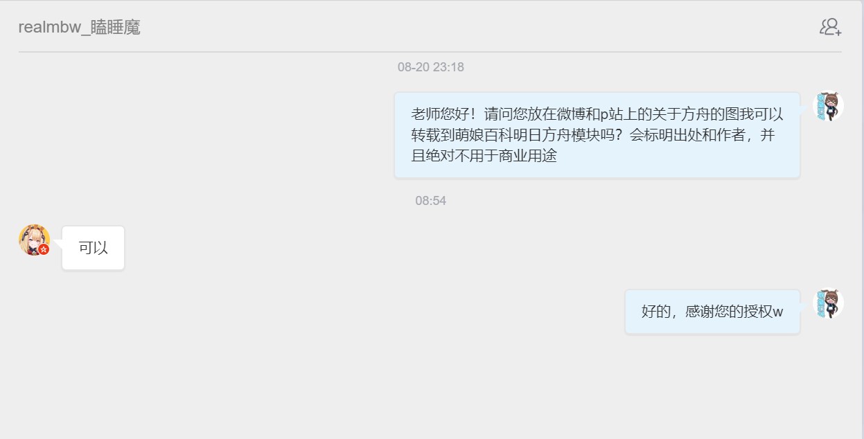- ④本人拒绝了转载其有关《明日方舟》的同人画作的请求。
