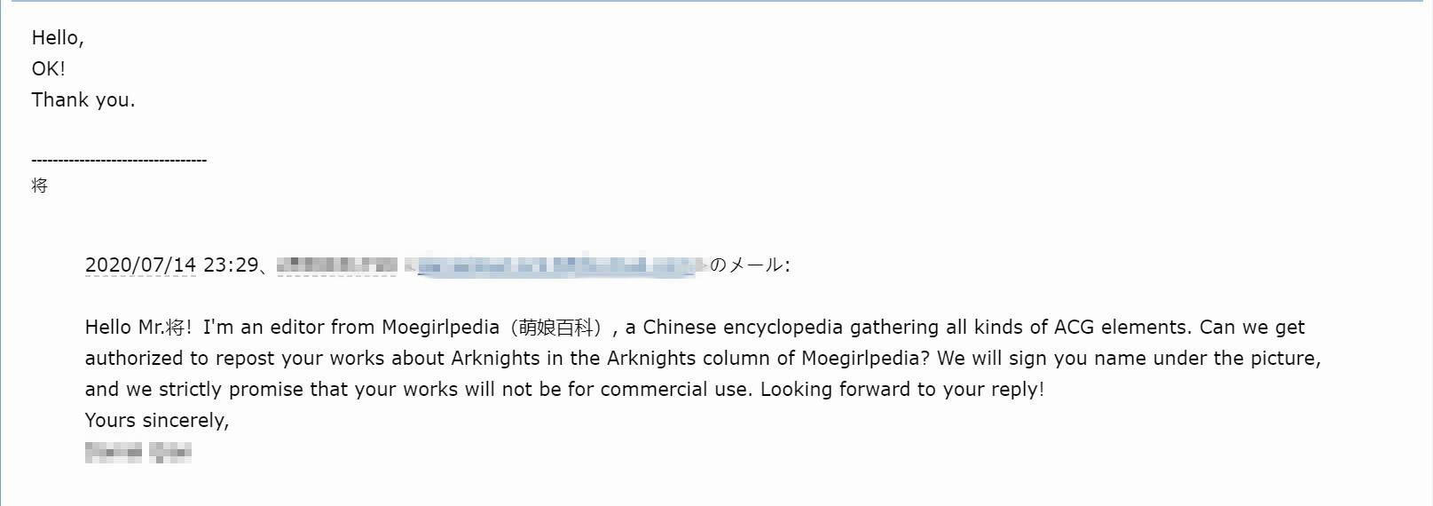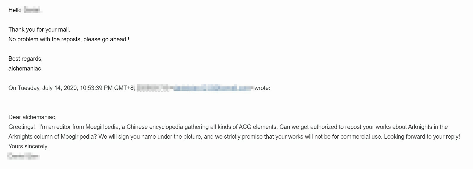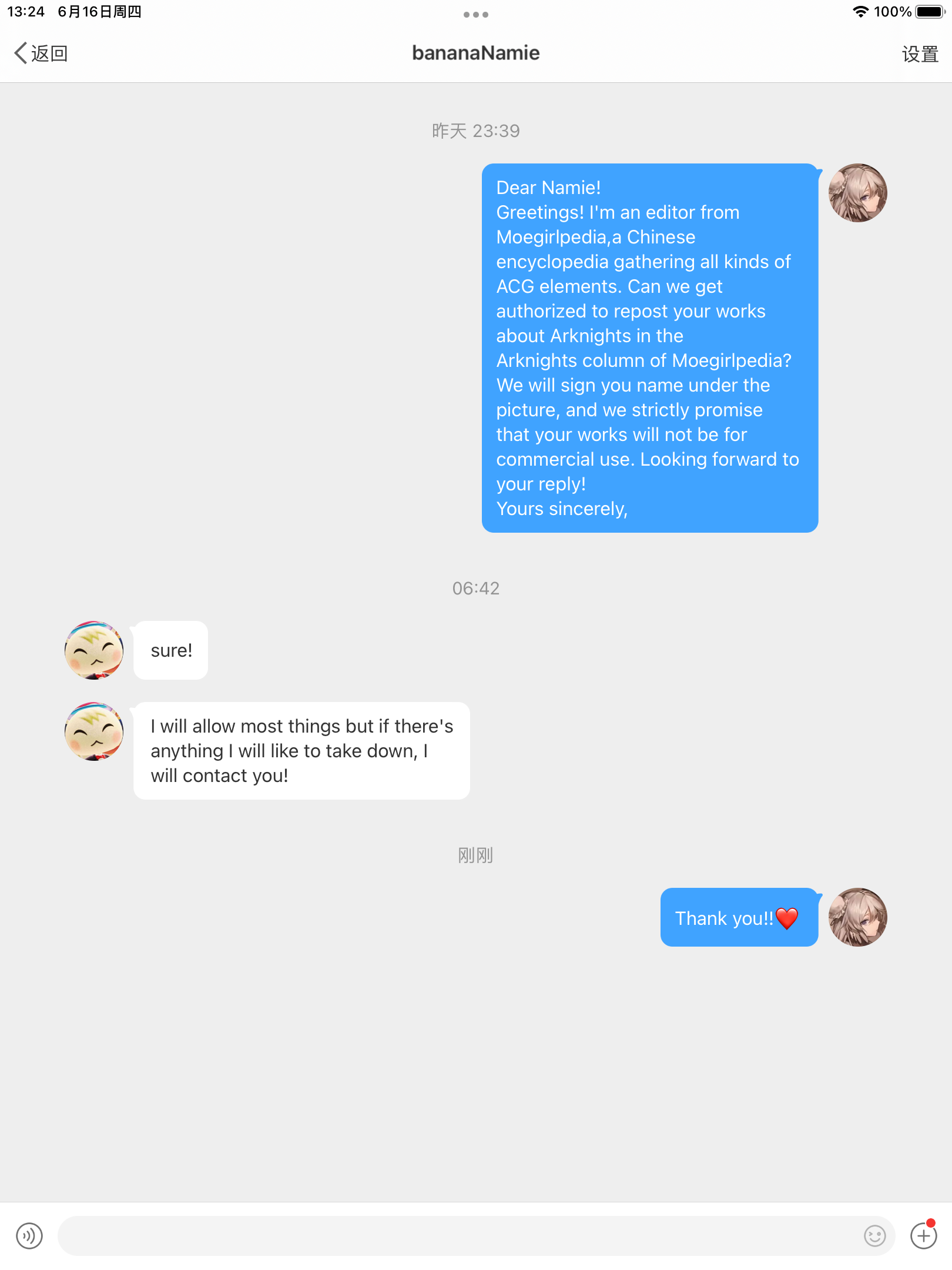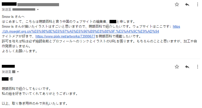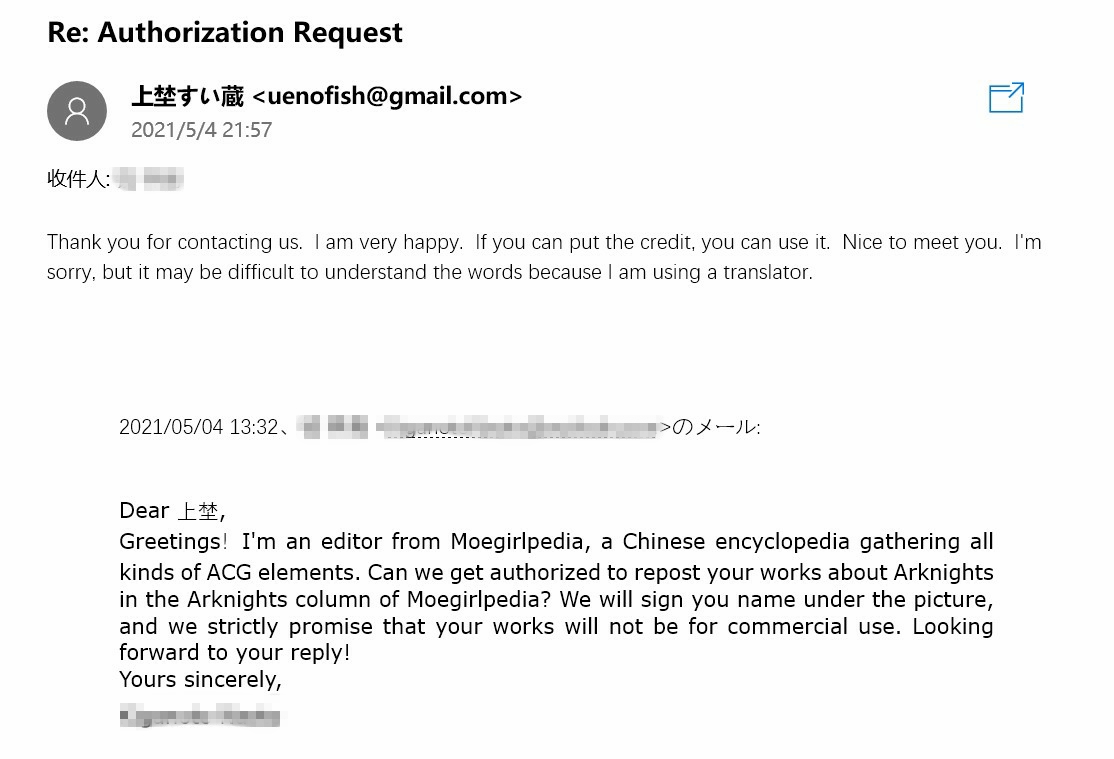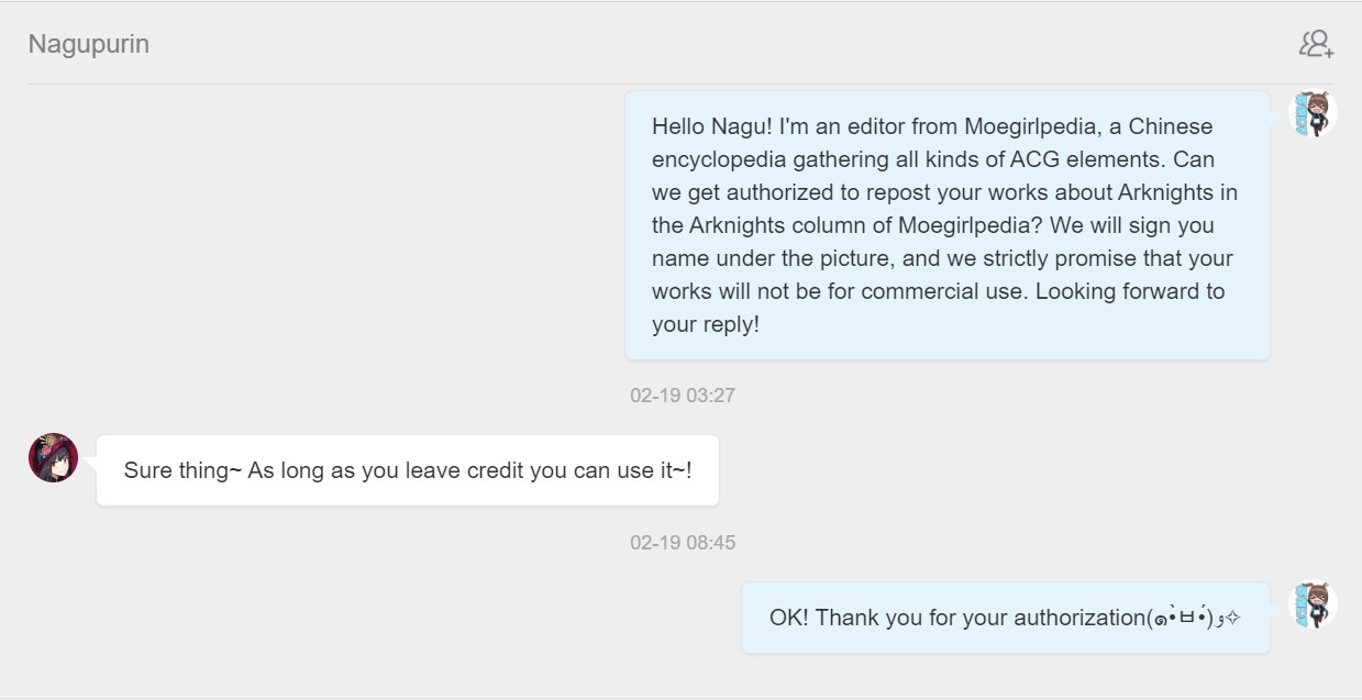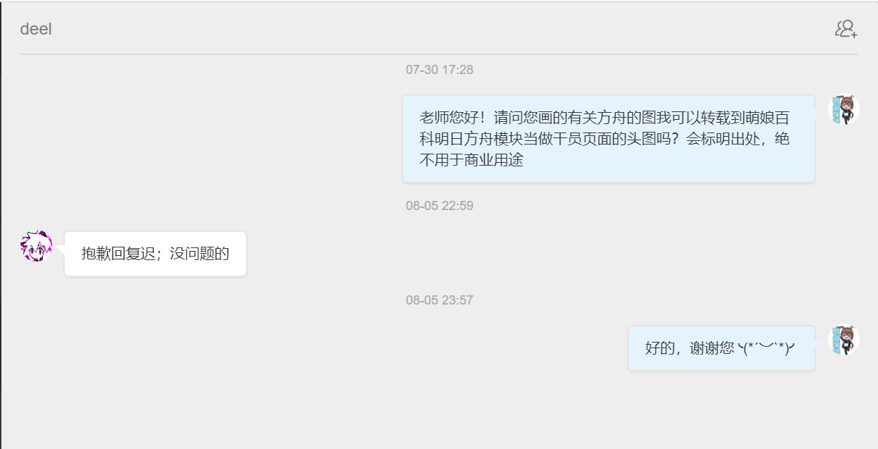 - ④本人拒绝了转载其有关《明日方舟》的同人画作的请求。