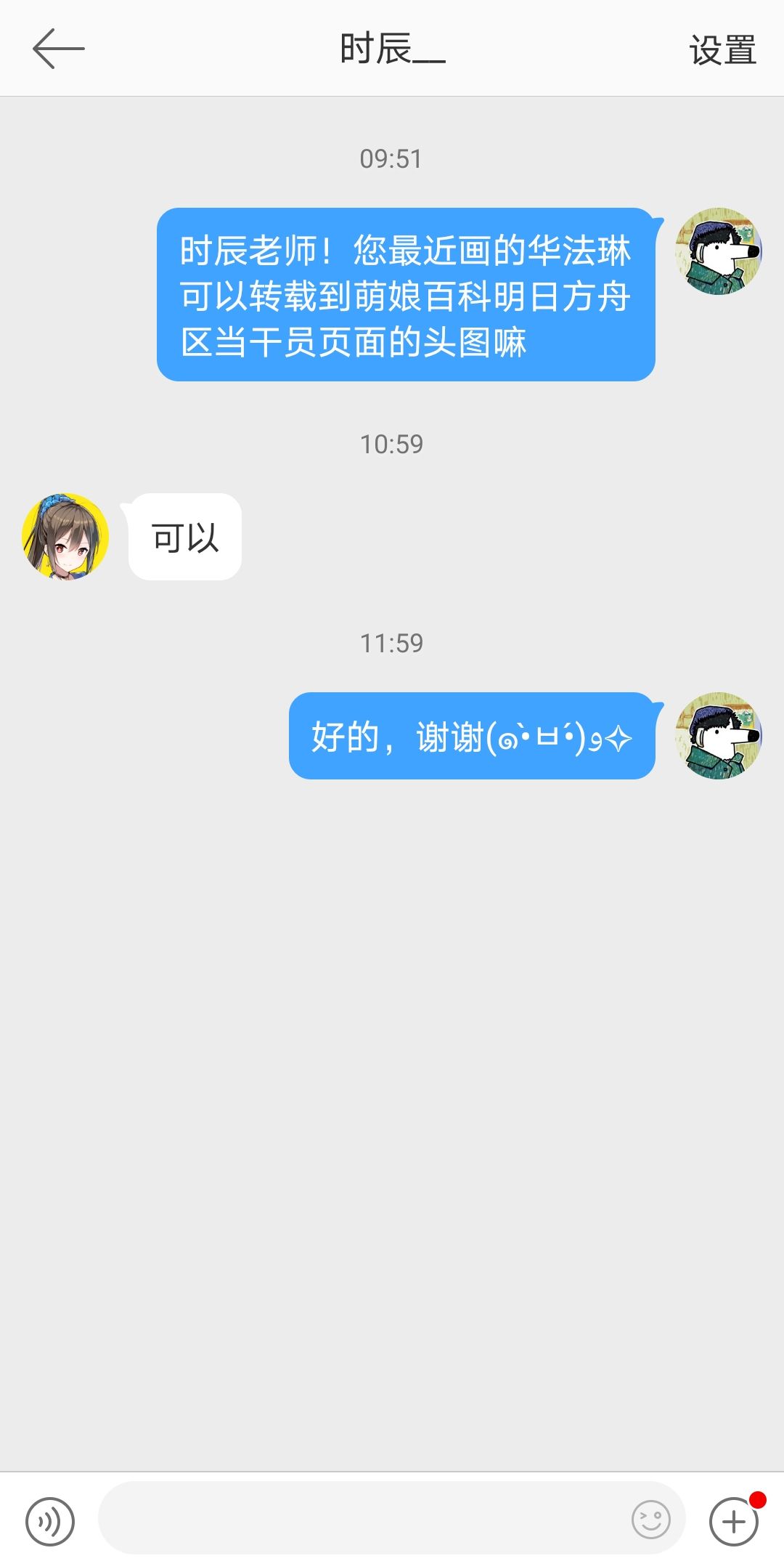 | 时辰 | 时辰的授权图 | 目前仅授权搬运与干员华法琳有关的图片。日后如有时辰老师绘制的《明日方舟》新角色的同人画作,须另行取得授权。 |
